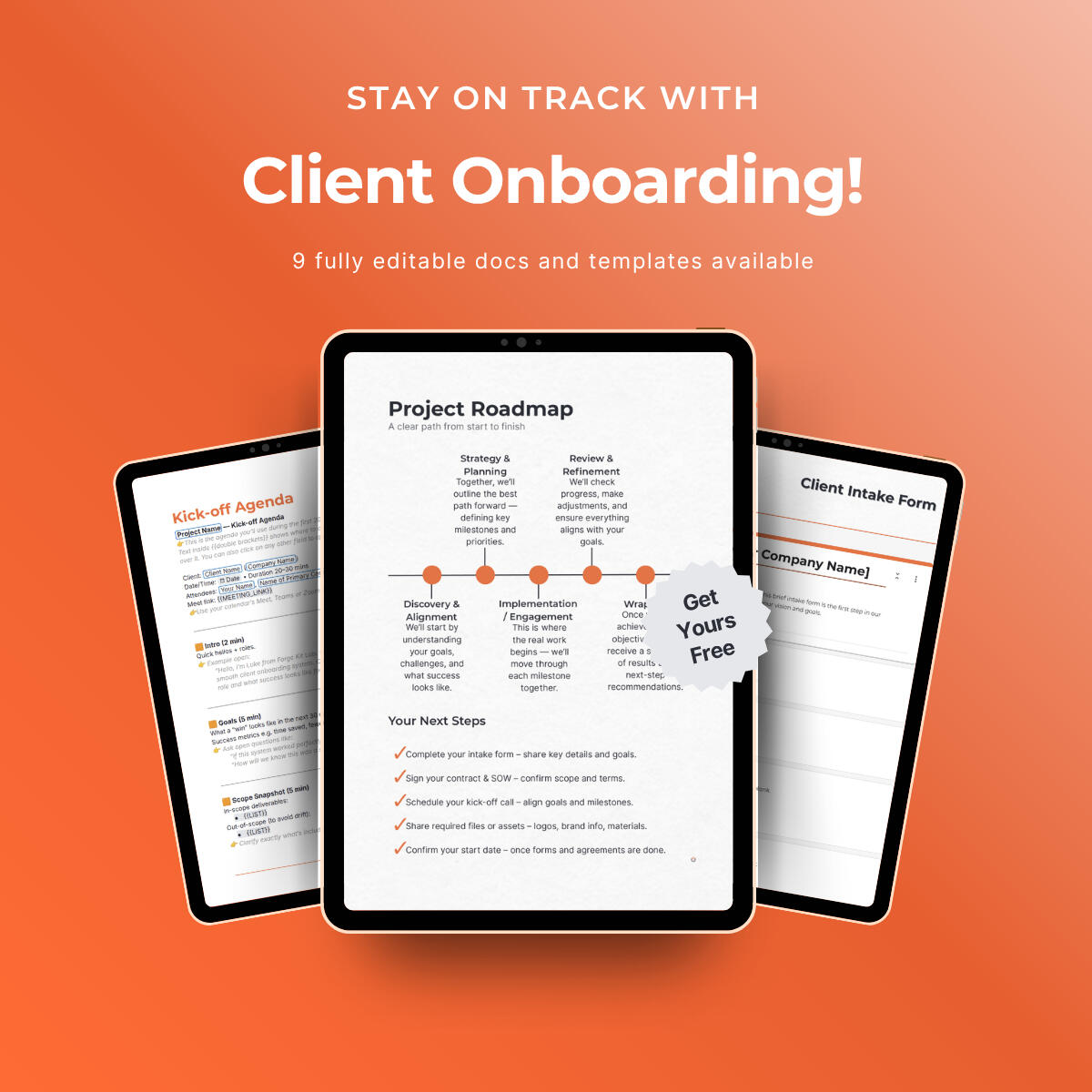What do I get? Lifetime access to the Client Onboarding Essentials Kit if you’re in the first 5; otherwise early founder pricing.